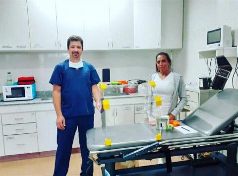 Los Kits Anti-contagio que tiene entre sus principales funciones el cuidado del personal hospitalario consta de una caja de acrílico transparente para aislar al paciente, a través del cual el profesional médico tiene la posibilidad de pasar los dos brazos y proceder a intubar al paciente sin ser contagiado.