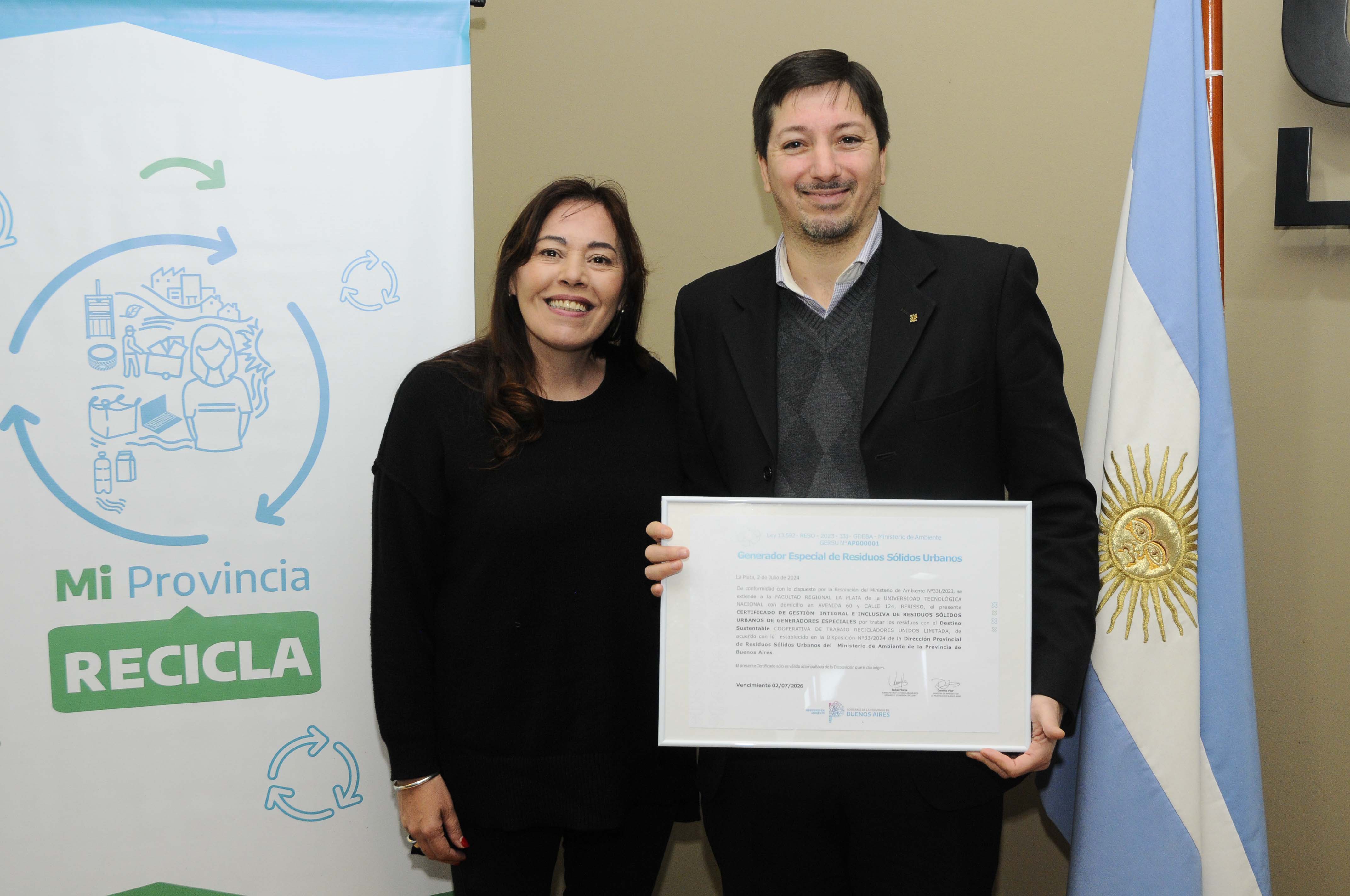 Esta distinción se otorgó tras la aprobación del ‘Plan de Gestión Integral e Inclusiva de Residuos de la Administración Pública’ que nuestra casa de altos estudios había presentado al Ministerio de Ambiente de la PBA y, de esta manera, se convierte en la primera institución pública de la región en recibirla.