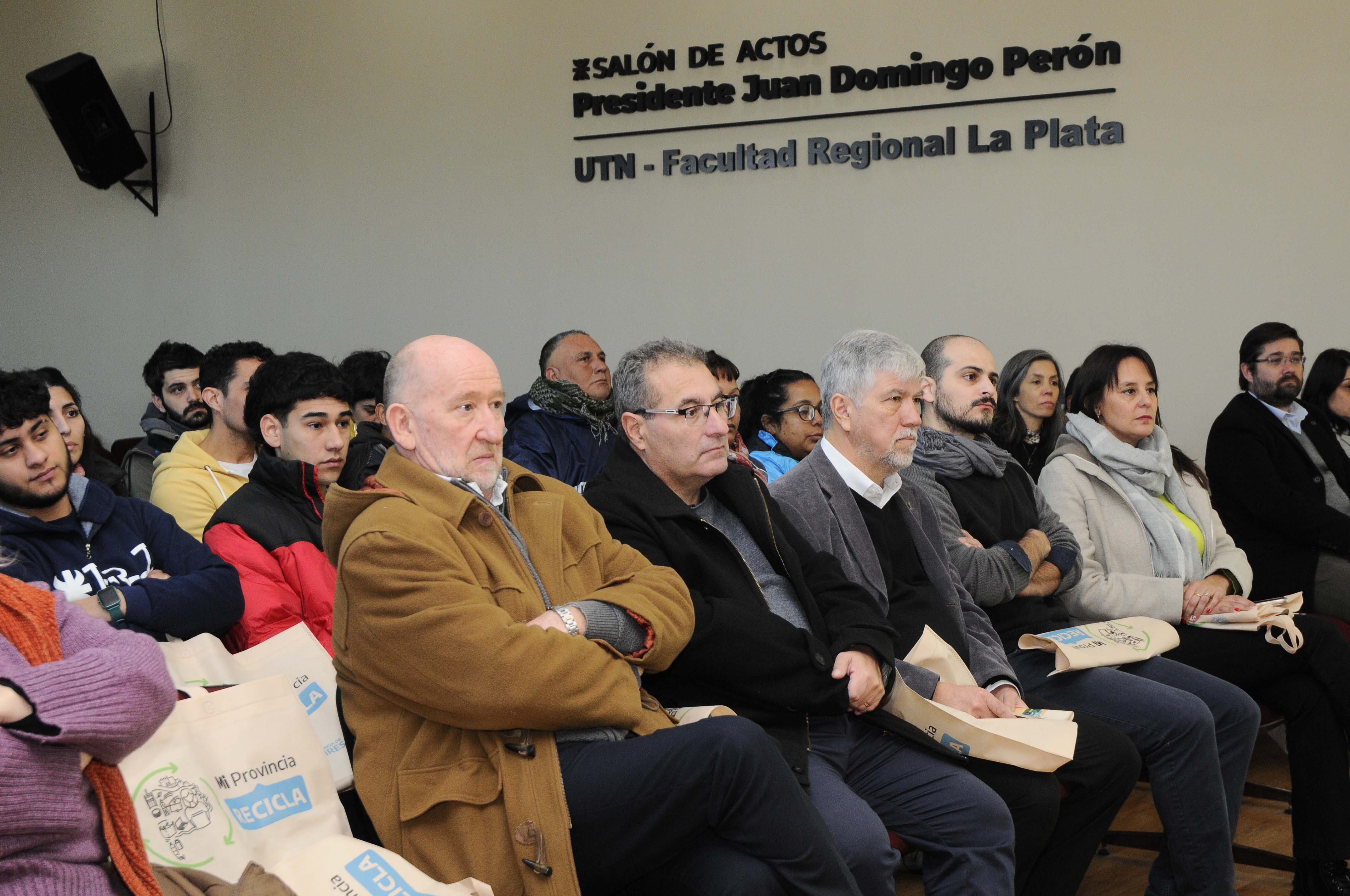 El encuentro organizado por la Secretaría de Consejo Directivo y Relaciones Institucionales de nuestra institución educativa, contó con la presencia del Decano Mg. Ing. Luis Ricci; la Subsecretaria de Residuos Sólidos Urbanos y Economía Circular del Ministerio de Ambiente de la Provincia de Buenos Aires, Jackie Flores; el Director Provincial de Residuos Sólidos Urbanos, Ramiro Vilariño; la Responsable del Programa Berisso Recicla, Martina Drkos; la Directora de Economía Popular de la Universidad Nacional de La Plata, Marisa Cantariño y la Presidenta de la Cooperativa de trabajo Recicladores Unidos Limitada, Verónica San Martín. También participaron autoridades de la Facultad, personas trabajadoras de la Economía Popular y público en general.