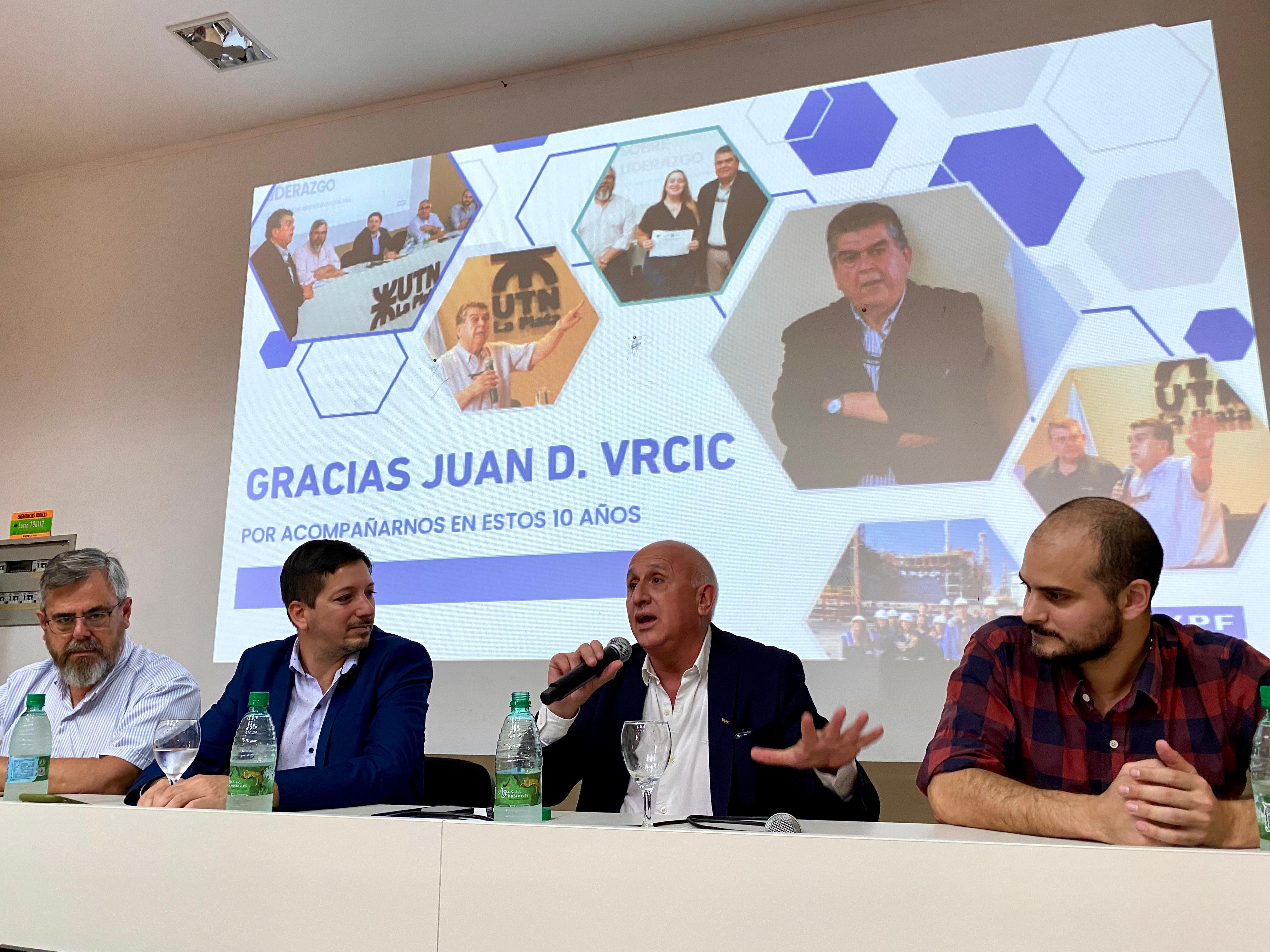 El acto también tuvo un momento emotivo cuando se hizo el reconocimiento a la trayectoria del Ing. Juan Domingo Vrcic, profesor de la Facultad que estuvo a cargo de la cátedra durante once años.